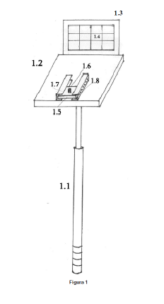 El dispositivo consta de una pértiga extensible a la que se ancla una plataforma horizontal con un marco rectangular transversal en un extremo, y una placa metálica móvil con un dispositivo de toma de imágenes en el otro. El dispositivo se maneja desde el suelo, y permite ajustar el ángulo de la plataforma por medio de un codo situado en su parte inferior y la distancia del dispositivo al marco de referencia por medio de una placa metálica móvil.
