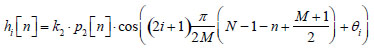 Además, el receptor de la invención contiene también un sistema paralelo (misma señal de entrada, y sumando las salidas), consistente en un banco de filtros con modulación seno, obtenido como :